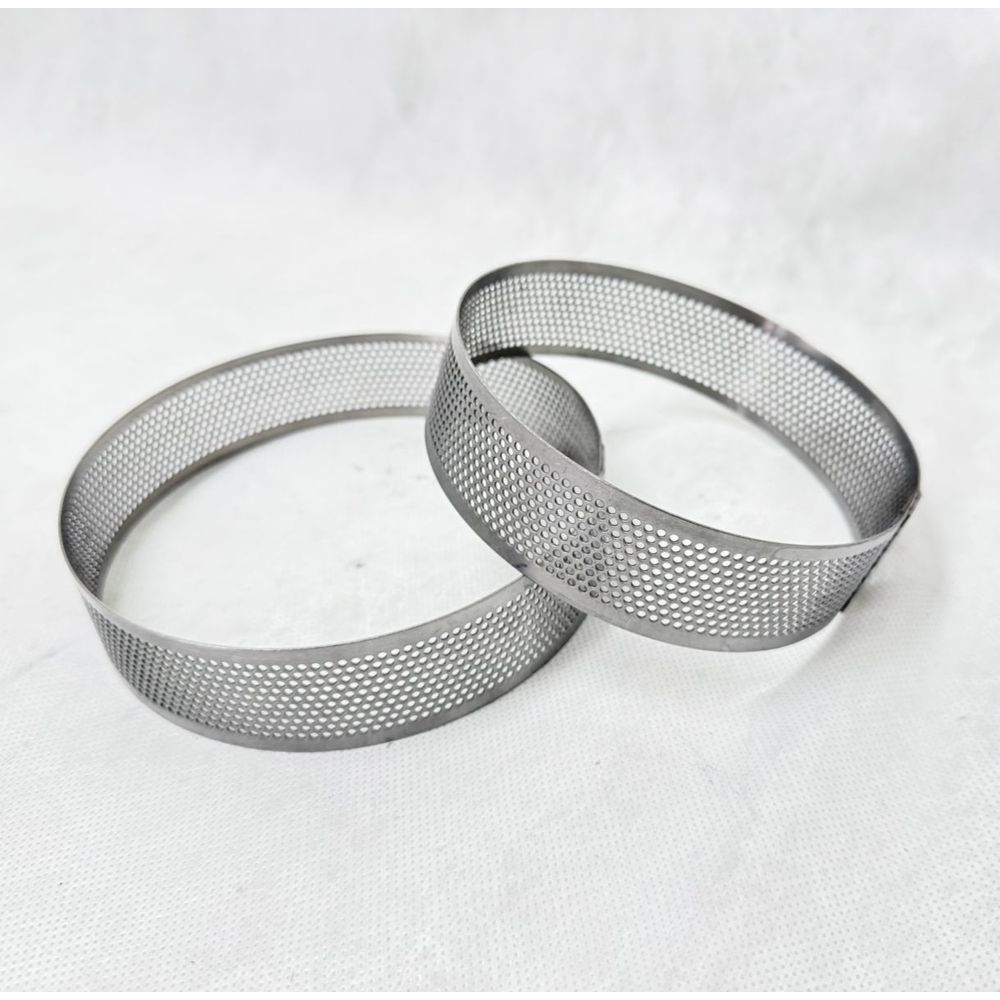 O aro perfurado é utilizado principalmente para assar massas de tortas, tarteletes e quiches, pois seus furos permitem a circulação de ar, resultando em uma massa assada de forma uniforme, com a textura e cor ideais. Também é útil para produzir doces finos e bases individuais com acabamento profissional.